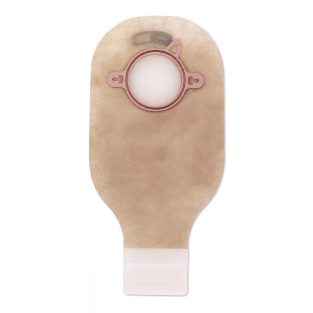 Drainable ostomy pouch and a Lock n Roll closure. This standard wears a drainable ostomy pouch that has an odor barrier film and ComfortWear panel on the body side for added comfort and peace of mind. The Lock n Roll closure system is easy to use, empty and clean. To close, simply roll the pouch tail three times in one direction and seal from the middle. To empty, pinch the sides of the tail pouch and control the flow of the output. To clean, wipe the pouch tail with a damp cloth. Designed for extended wear, this all in one kit is ideal for post-operative abdomens since it relieves the pressure with the floating flange.